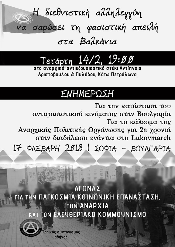 Για τo κάλεσμα της Αναρχικής Πολιτικής Οργάνωσης για 2η χρονιά στην διαδήλωση ενάντια στη Lukovmarch 17 Φλεβάρη 2018 | Σόφια - Βουλγαρία