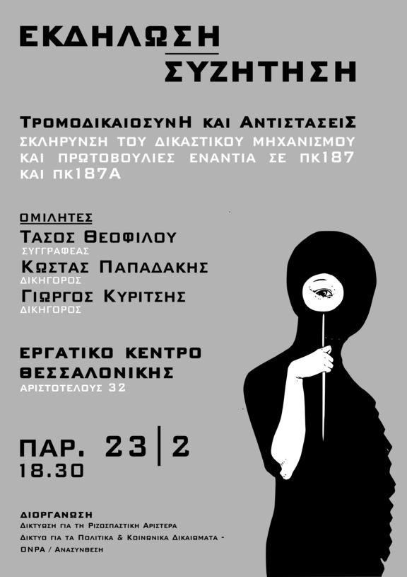 Σκλήρυνση του δικαστικού μηχανισμού και πρωτοβουλίες ενάντια στα ΠΚ187 και ΠΚ187Α