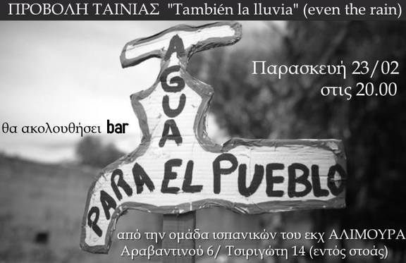 Προβολή Ταινίας - Tambien la lluvia + after bar