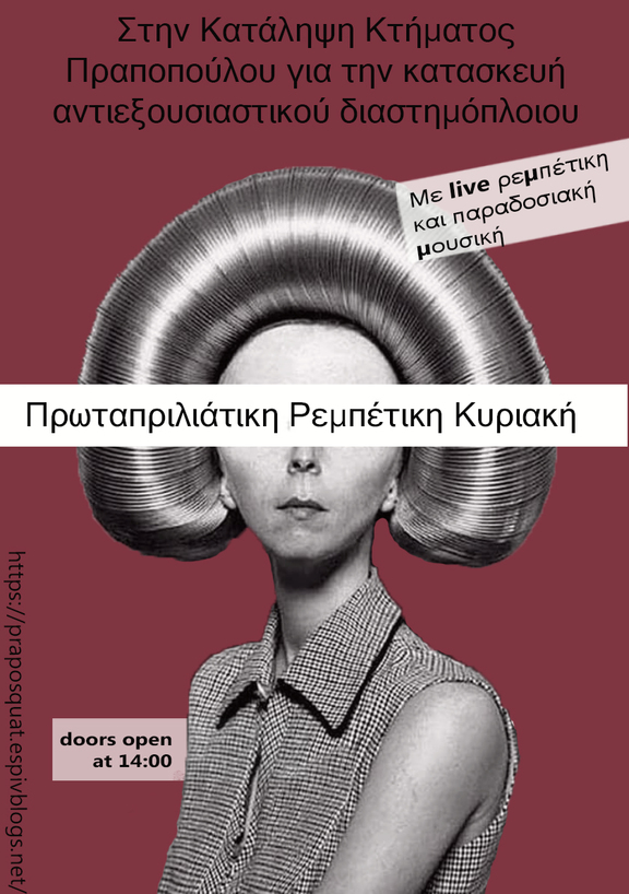 Την κυριακή 1.4.2018 θα παίξουν στην κατάληψη φίλοι και φίλες μουσικοί ρεμπέτικα και παραδοσιακά ακούσματα από τις 2μμ.