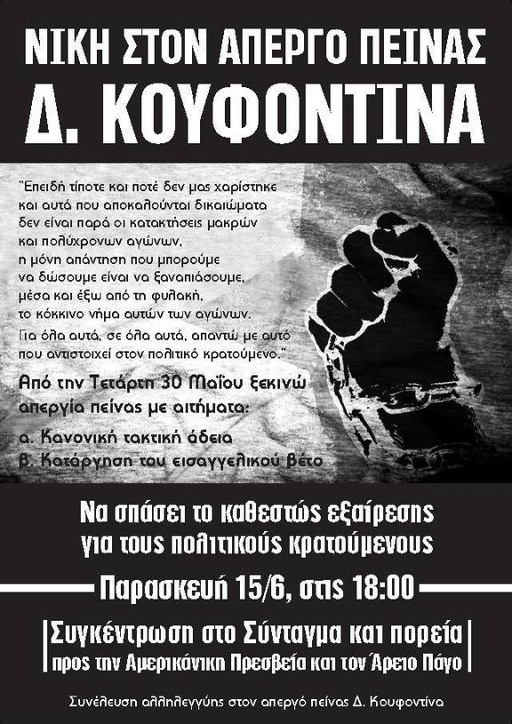 Συνέλευση αλληλεγγύης στον απεργό πείνας Δημήτρη Κουφοντίνα